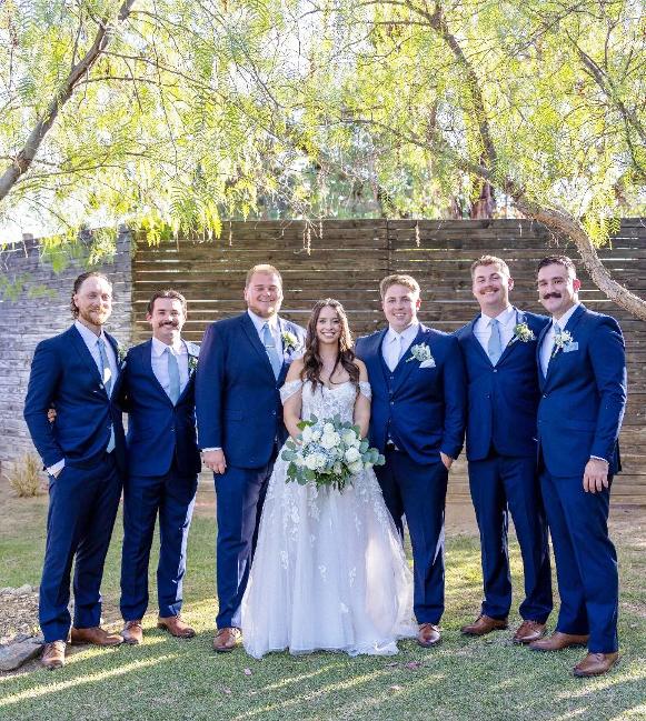 "I was planning my wedding from across the country and they were so incredibly helpful and friendly! I couldn't find my color for the guys vests anywhere, but Shae special ordered my color. I was a little nervous because I heard one bad review from someone...but then I found out that they complained about things fitting when they did not go in for a final fitting. My dad lost a ton of weight for the wedding and they were ready for him just days before! The customer service alone makes them a cut above the rest....but when Shae told me with absolute certainty that she would take care of this AND I would love it....I knew I called the right place. They did not let me down! No shoes fell apart, no hems undone, no pants falling off. The prices are great and the service is even better! Thanks you!"